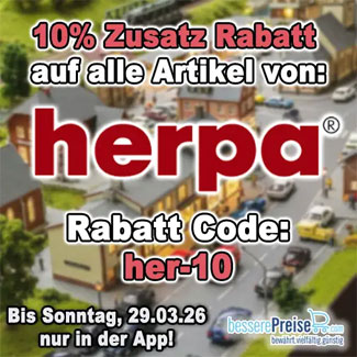 Für kurze Zeit in unserer App 10% Zusatz Rabatt auf alle verfügbaren Herpa Artikel mit dem Code „her-10“ sichern!